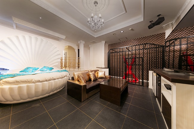 教室や診察室などのコンセプトルームや、コスプレルーム、浴室には風呂場鏡貼り&手かせ取付けがあるルームも多くあります。とてもきれいで落ち着きそうなラブホです。