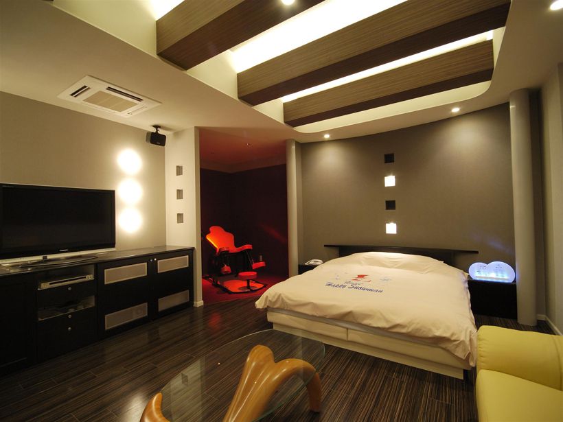 208にポセイドンが設置されたSMルームがある連棟形式ラブホです。藍住インターチェンジから車で11分です。(ポセイドンは診察台みたいなSM用拘束チェアですね。)画像はハピホテより参照。