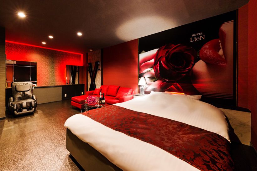 308にX拘束チェアー、508にX字枷があるSMルームあり。サウナ付、露天風呂付など様々なコンセプトルームがあります。水巻駅から車で6分。ビル形式のラブホで、きれいな外観です。